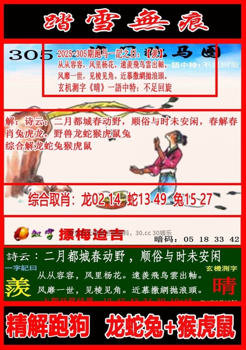 305期【蛇兔牛龙鸡猪猴羊开:鼠42准
