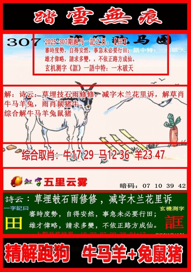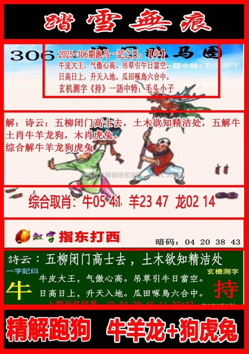 306期【羊狗龙鼠虎蛇鸡马】开:牛17准