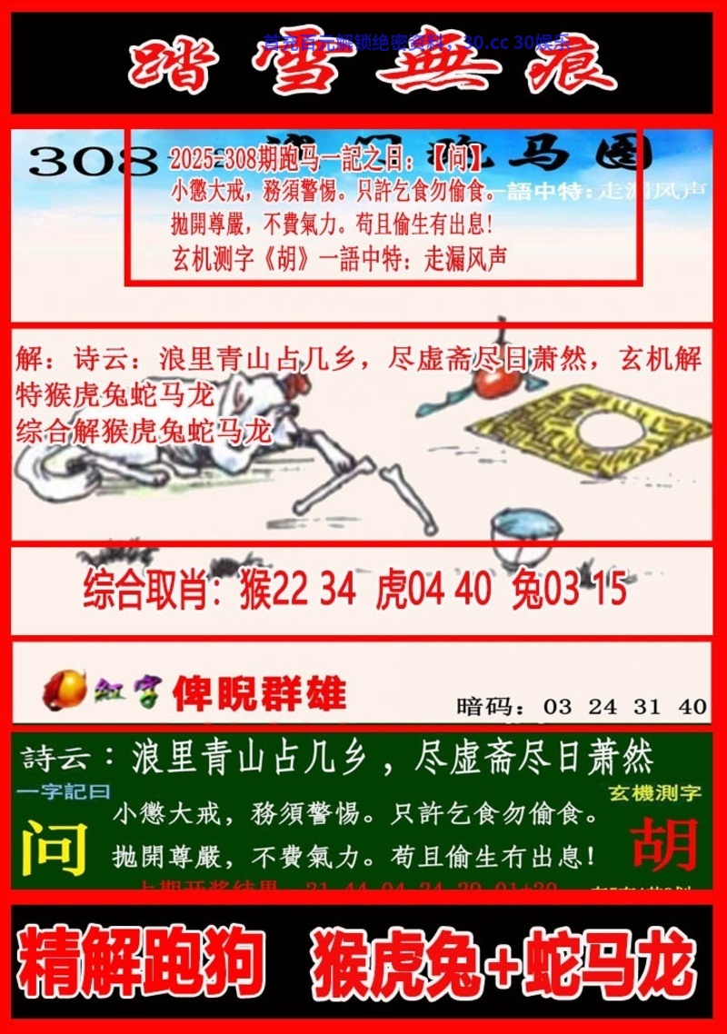 300期今期鸡马猪出特,一别朱门三四春开虎40